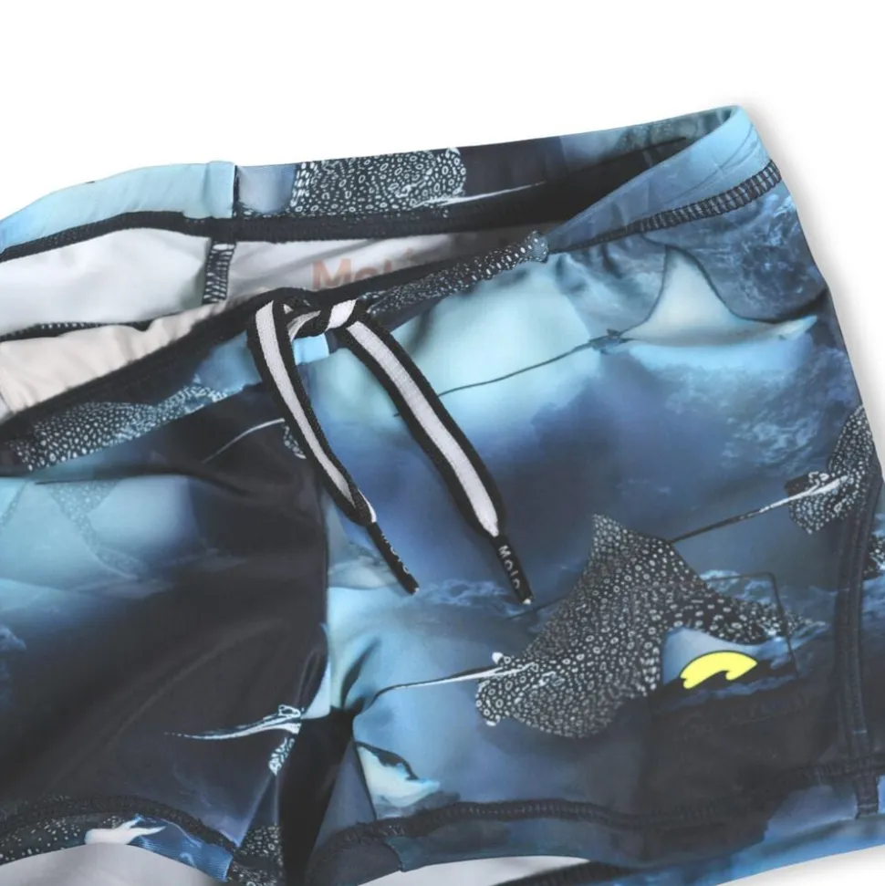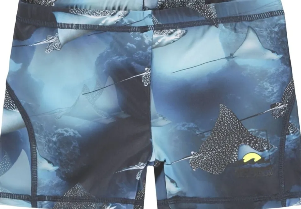 Sporty badeshorts til aktive børn med underhavsprint. Designet til komfort og funktionalitet, med tætsiddende pasform og længde til midt på låret. De har indvendig snøre, så pasformen let kan justeres, hvilket gør dem perfekte til leg i vandet. Badeshortsen er lavet af genanvendt polyester og tilbyder UV50+ beskyttelse, så børnene kan nyde solen sikkert.