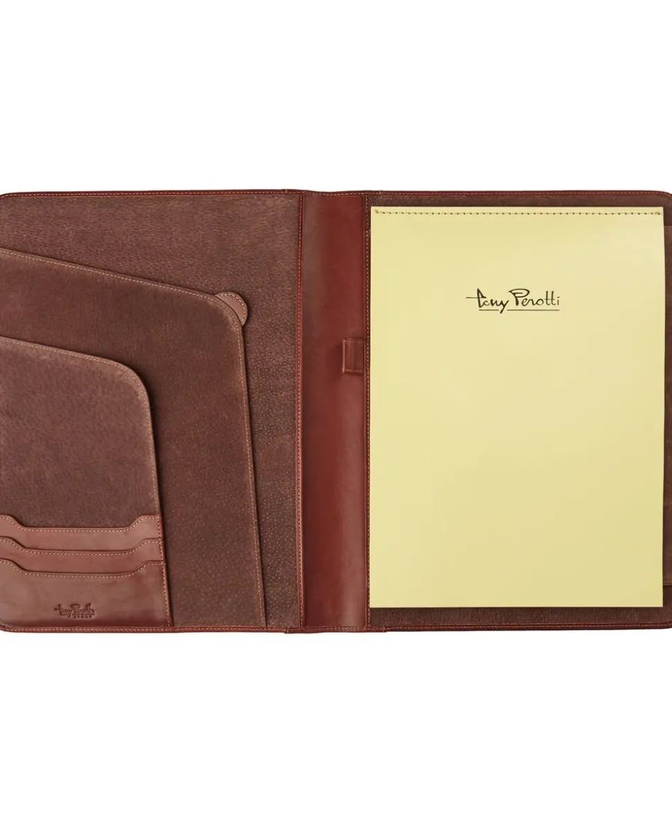 Tony Perottis stilfulde skriveportfolio i A4-format er den ideelle ledsager til den professionelle på farten. Denne elegante mappe tilbyder plads til en notesblok og har en dobbelt lomme til A4-dokumenter, hvilket gør det nemt at holde dine papirer organiseret. Derudover er der indrettet specielle rum til kreditkort, visitkort og en praktisk penholder, så du altid har det nødvendige ved hånden.