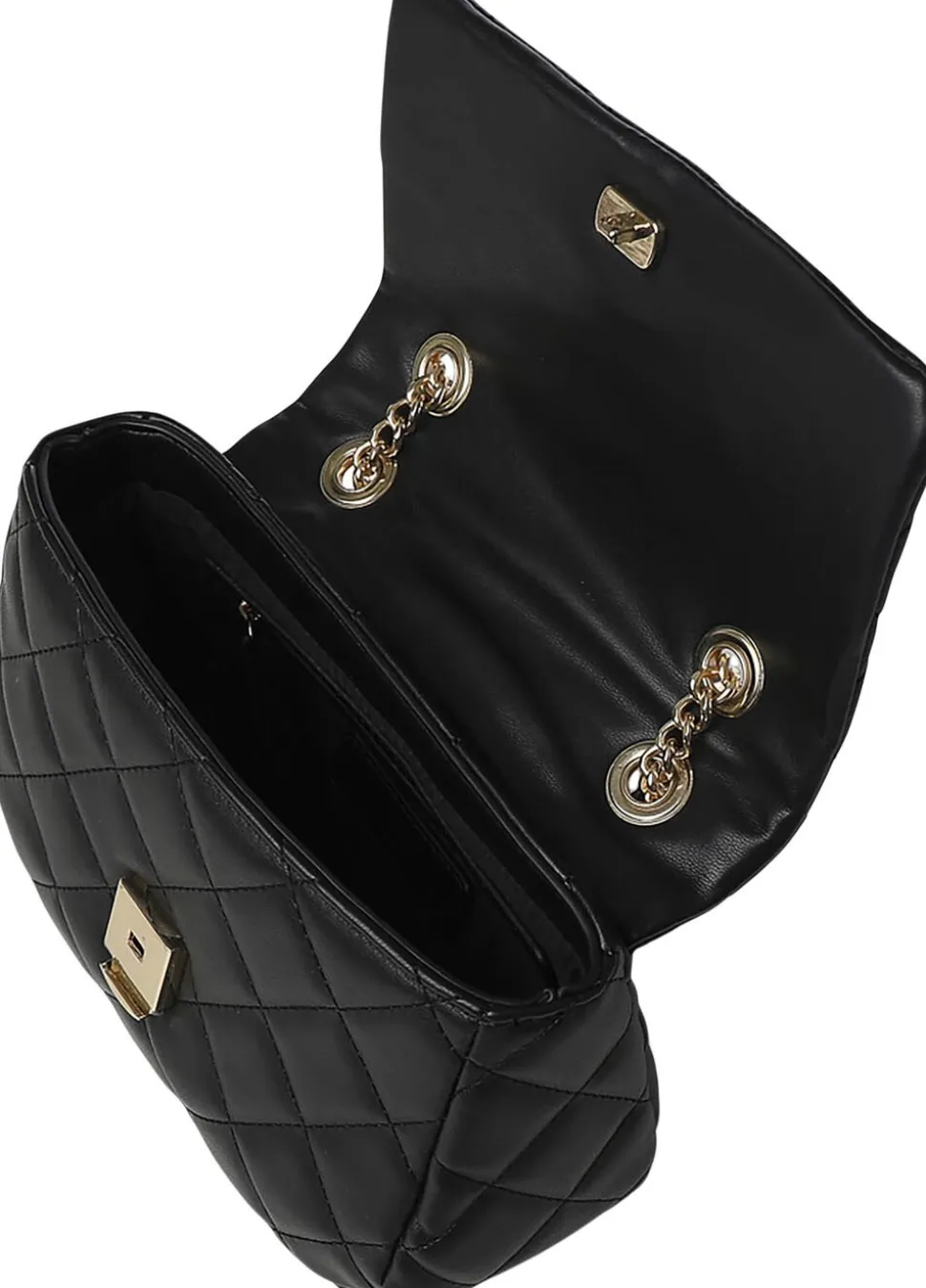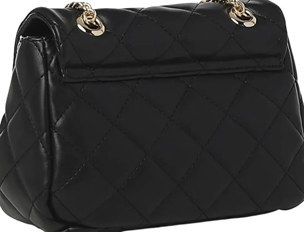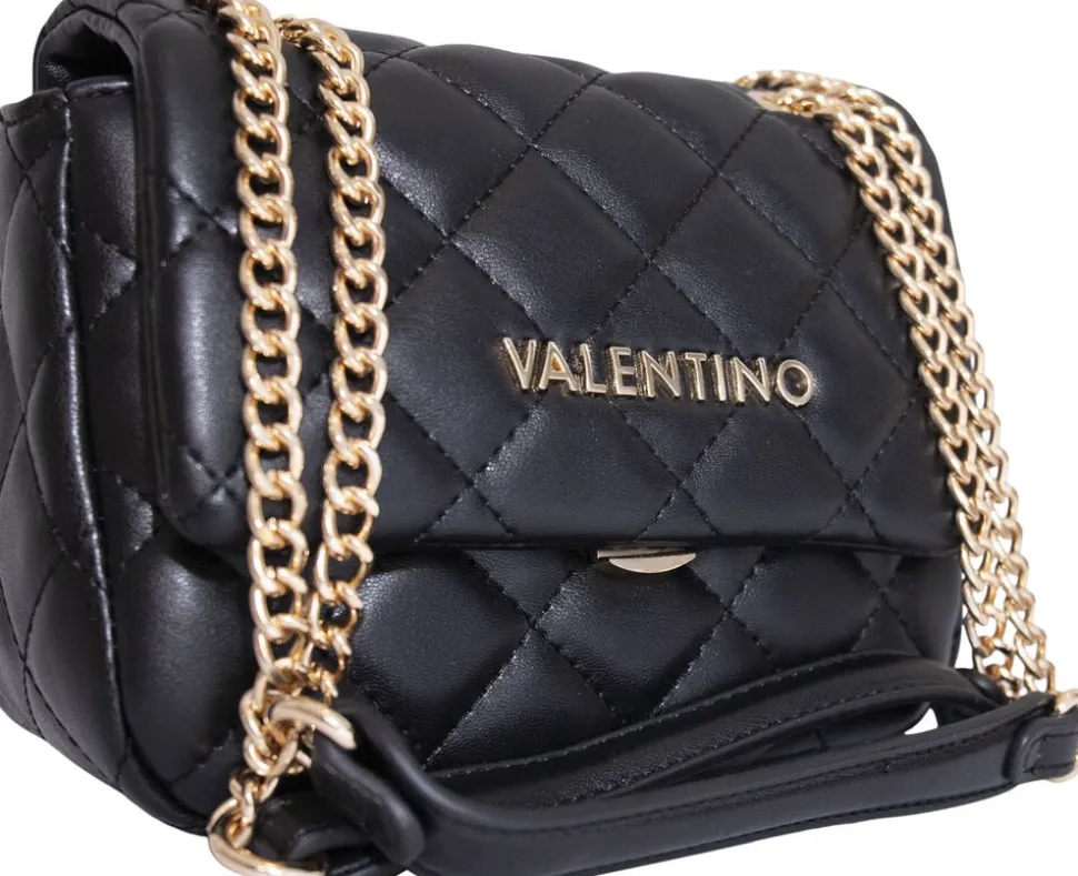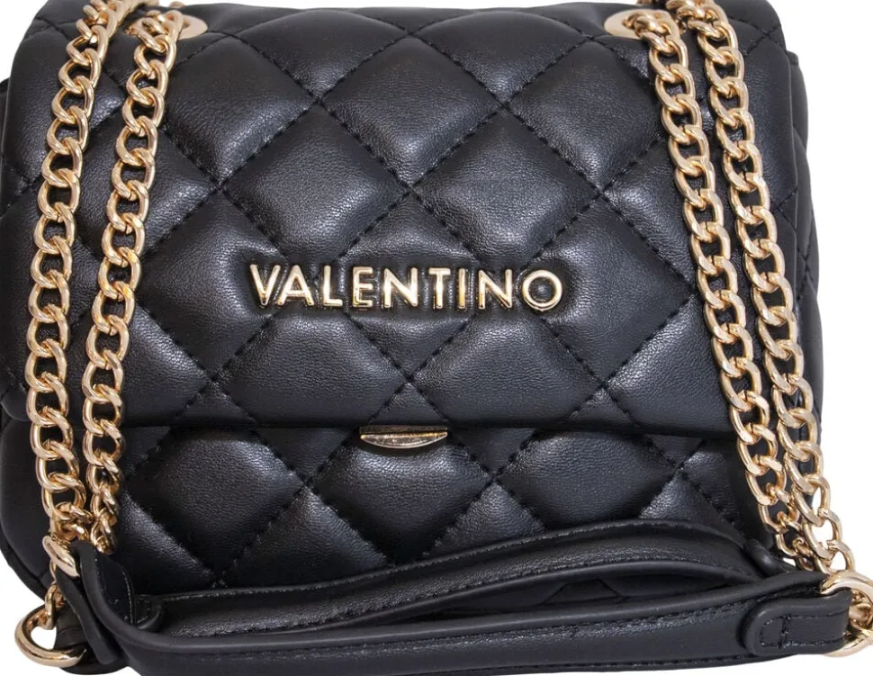 Valentinos “Ocarina” crossbody-taske åbnes for at afsløre et rummeligt interiør foret med polyester. Tasken er fremstillet af quiltet PU-læder og har en holdbar rem, der kan justeres til en kortere længde.