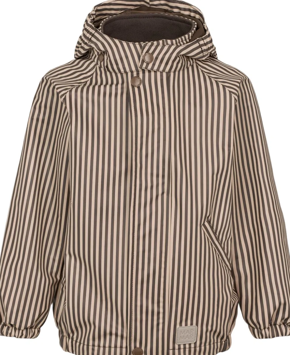 Regnsæt til de mindste. Regnbukserne har justerbare seler og har elastik i siderne for at sikre den bedste pasform. Regnbukserne har praktiske fodstropper som sørger for, at bukserne bliver siddende over støvlerne, så der ikke kommer vand ind. Jakken har en lomme foran og lukkes med lynlås og trykknapper. Jakken har en aftagelig hætte, der kan fjernes efter behov, og elastiske manchetter ved ærmerne, som sikrer en tætsiddende pasform og forhindrer vand i at trænge ind.