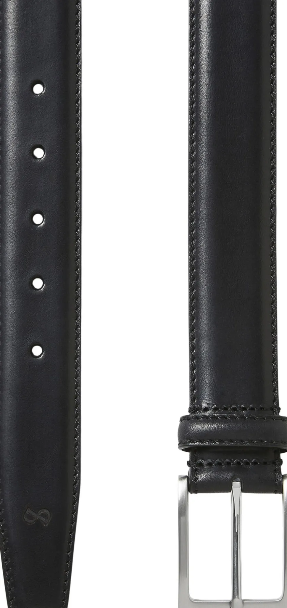 Klassisk herrebælte i ægte læder med stikning fra SADDLER. 35mm bredt med spænde i børstet sølvfinish. Bæredygtigt produceret i Italien. Egner sig til både business, jeans og casual brug. Den høje kvalitet på læderet gør at det kun bliver flottere med tiden. Bæltelængden er målt fra bæltespændet til midterste af de 5 huller.