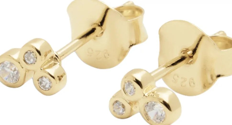 Et par miniørestikker i 925 sterlingsølv, med tre indfattede krystalhvide CZ-sten i forskellige størrelser. Et feminint og alsidigt design og et perfekt smykke-essentiel.