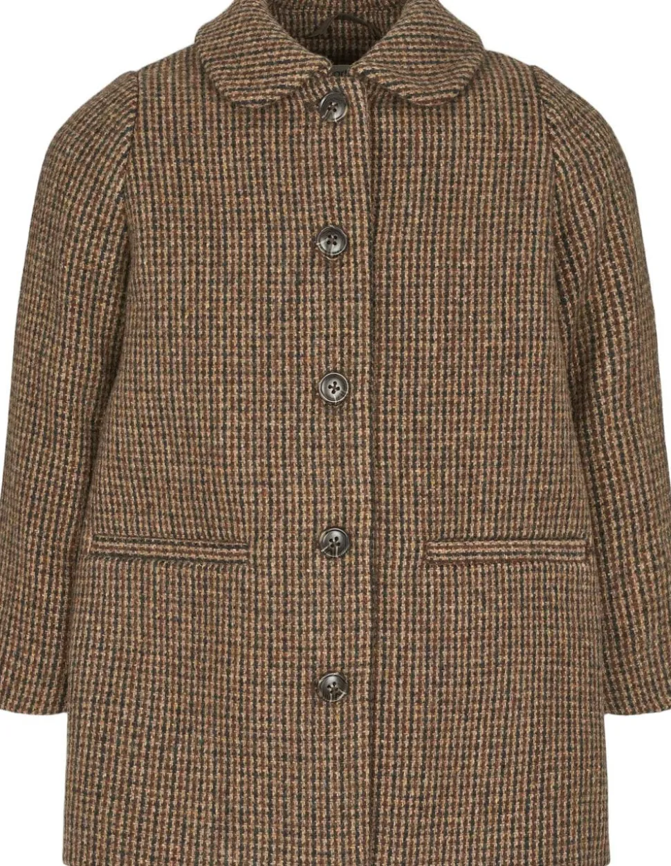 Klassisk og tidsløs uldfrakke med lange ærmer – Perfekt til de køligere måneder. Frakken har et elegant ternet mønster med fine rynkedetaljer på ryggen for en flot pasform. Frakken har krave, knaplukning og to diskrete lommer foran (Obs. Lommerne er riet sammen og skal sprættes forsigtigt op). En stilfuld og funktionel frakke, der kombinere klassisk design med komfort og varme.