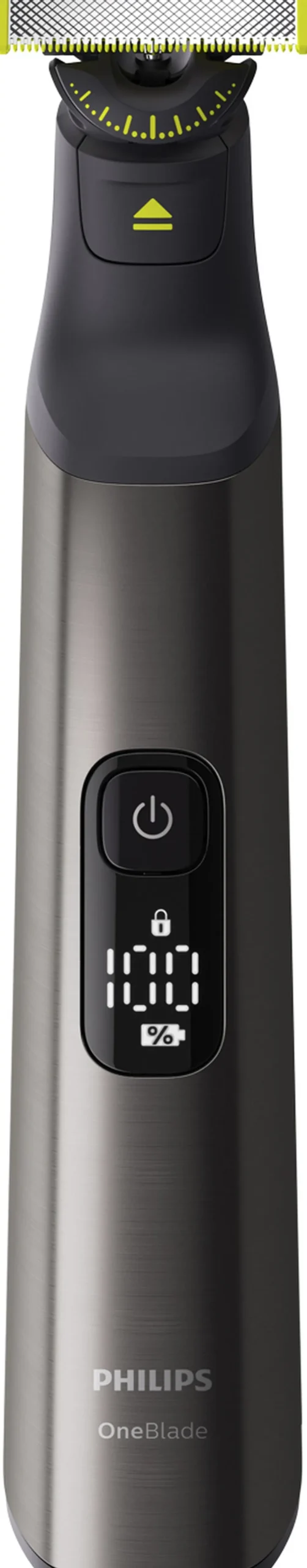 Philips OneBlade Pro ansigt + krop trimmer, klipper kanter og barberer alle hårlængder. Du får et skær til dit ansigt og et med hudværn til kroppen. Glem alt om at bruge flere værktøjer. OneBlade klarer det hele.