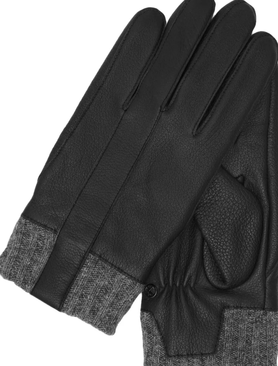 Elegante skindhandsker til mænd fra KESSLER®, model Otis. Handskens yderside er lavet af hjorteskind kombineret med strikdetaljer, mens indersiden består af en behagelig blanding af uld og nylon for optimal varme og komfort.