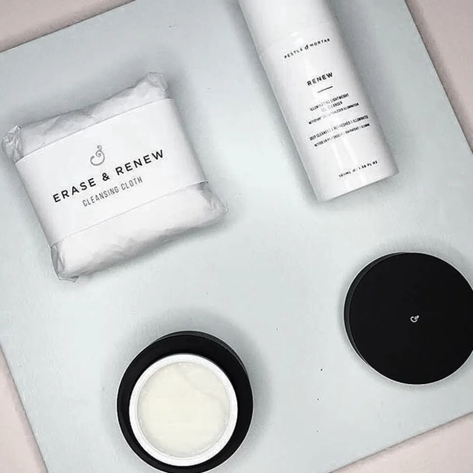 Den har en musselinside, som giver en blid peeling, når du bruger Erase Cleansin Balm, samt en frottéside, der beroliger huden, mens du fjerner resterne fra dagen. Kluden er ideel at bruge sammen med Renew Gel Cleanser.