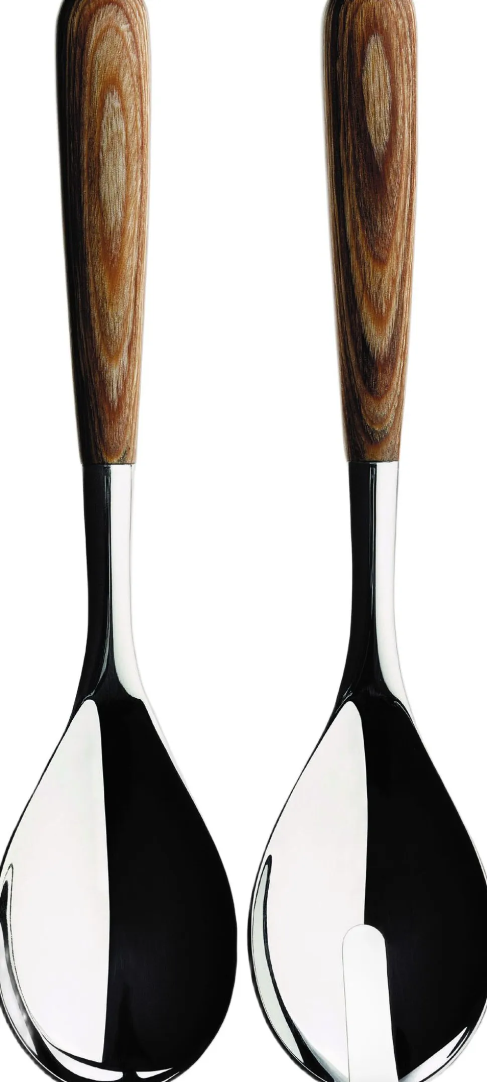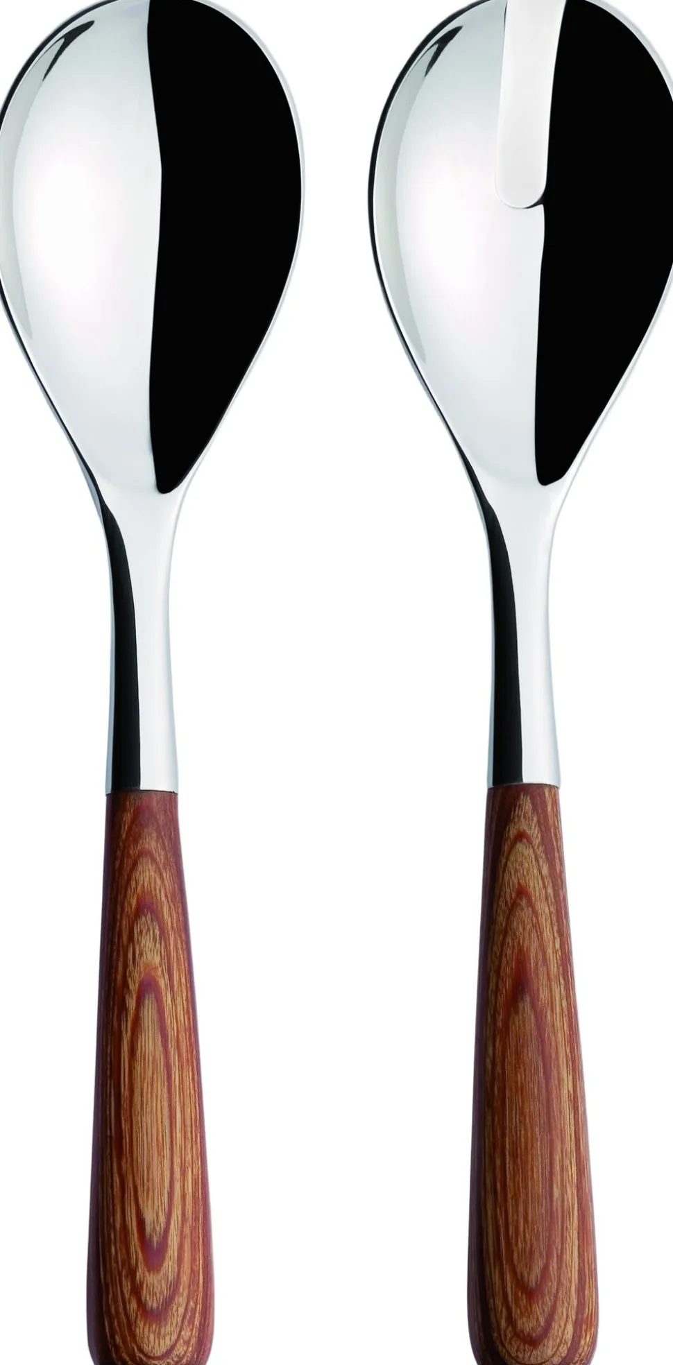Tilføjer moderne elegance til enhver borddækning. Piano-serveringssættet består af en ske og en gaffel i serveringsstørrelse med den karakteristiske slanke hals og det udvidede skaft. Poleret rustfrit stål blandes problemfrit med træ for en fantastisk effekt.