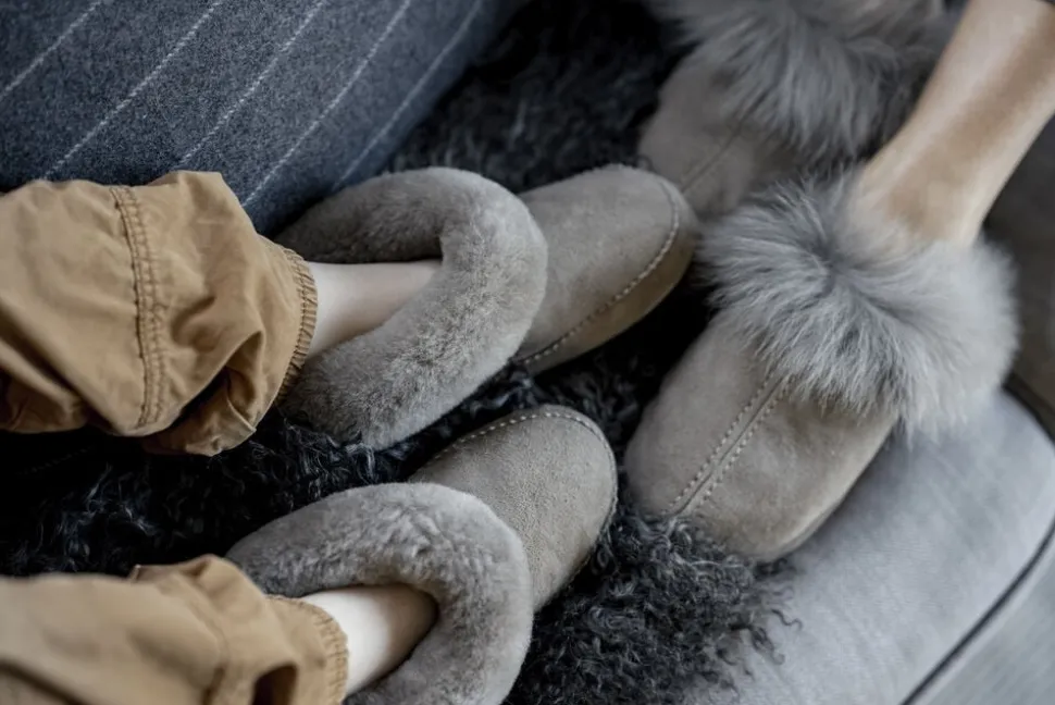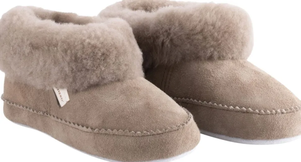 Shepherd Piteå er et par bløde og varme børnesutsko i fåreskind. Sutskoene er udformet i en ankelhøj model med en bred foldet kant i fåreskind. Dekorative syninger. Blød sål i ruskind.