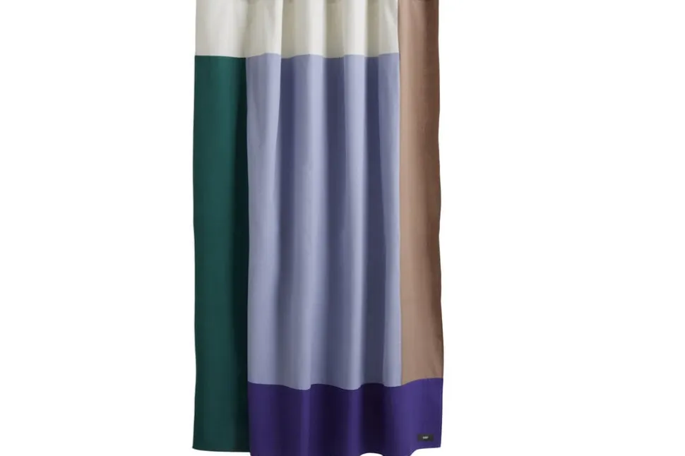 Pivot Shower Curtain har et grafisk farveblokeret Design, der udforsker slående farvekombinationer. Den er fremstillet i bomuld med en vandafvisende finish og har metalringe og tyller, der gør den nem at hænge op. Fås i to kunstneriske designs, der bringer dynamik og farve til badeværelset