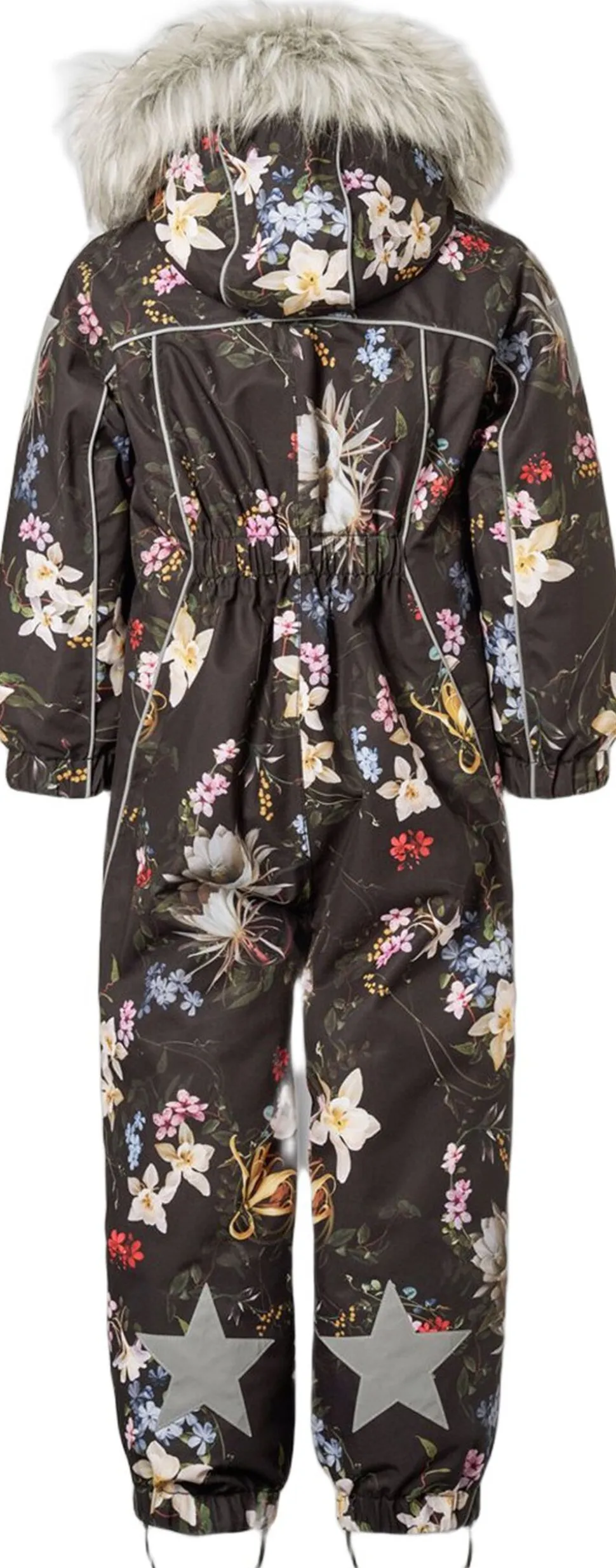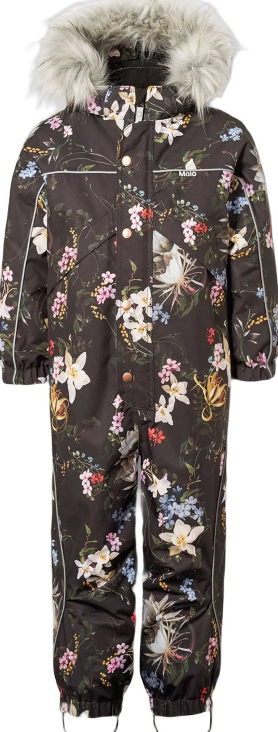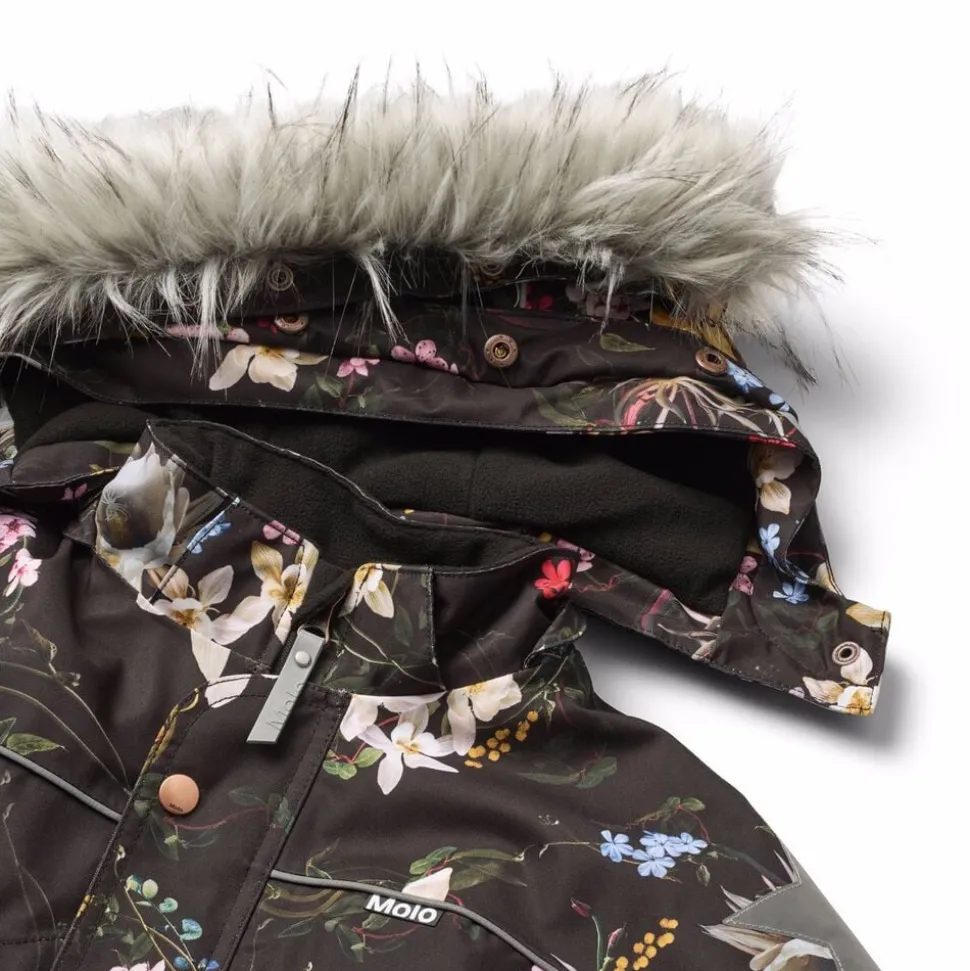 Denne vind- og vandtætte flyverdragt fra Molo er fremstillet i genanvendt nylon. Den har en aftagelig, foret hætte med en aftagelig kant i faux fur, frontlommer med vindfang samt lynlåse på fronten med overfald og hagebeskytter.