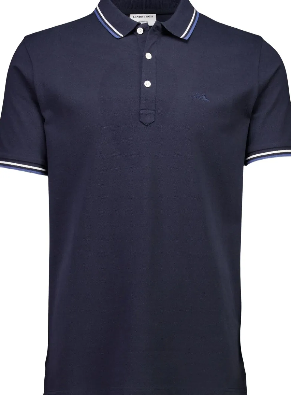 Klassisk polo fra Lindbergh lavet i 100% bomuld. Ensfarvet og med broderet logo på venstre bryst og knappestolpe med tre knapper. Farvedetaljer yderst på ærmene og i kraven.