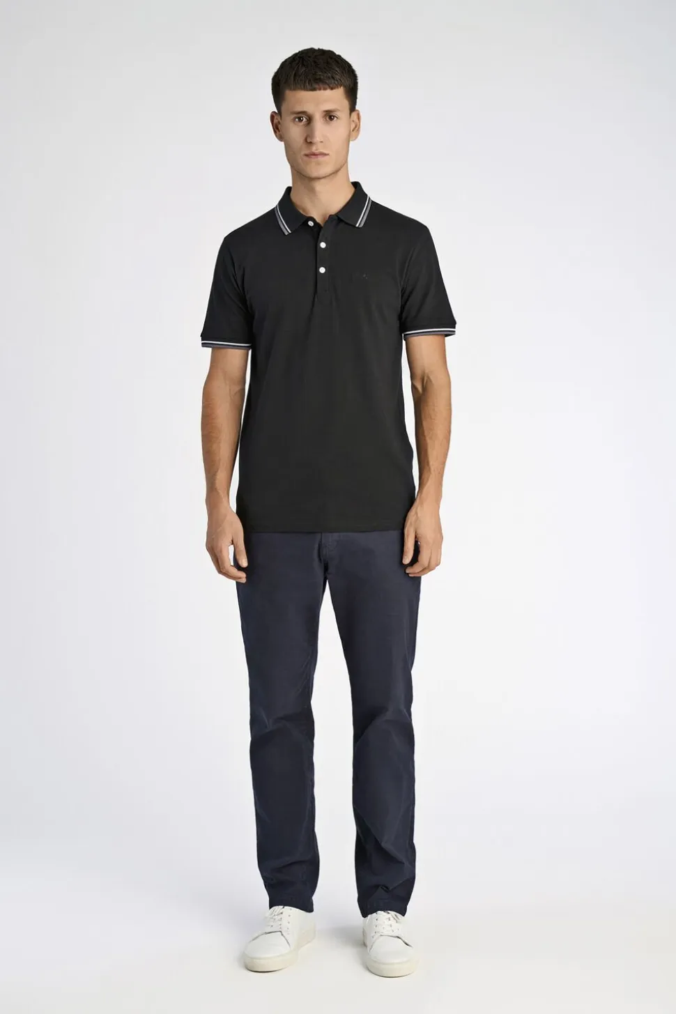 Klassisk polo fra Lindbergh lavet i 100% bomuld. Ensfarvet og med broderet logo på venstre bryst og knappestolpe med tre knapper. Farvedetaljer yderst på ærmene og i kraven.