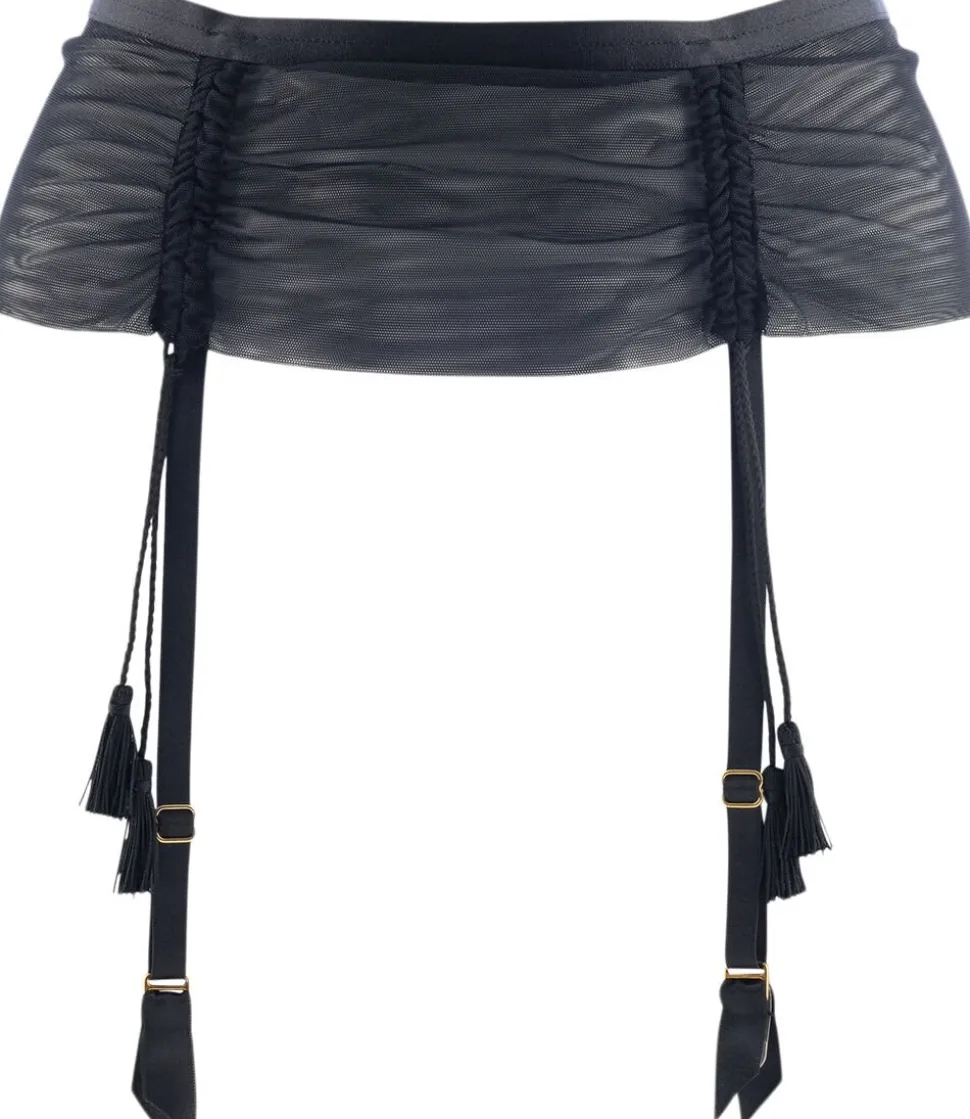 This Boîte à Désir reinterprets opera with this cheeky black tulle set featuring tassels for a sultry experience.