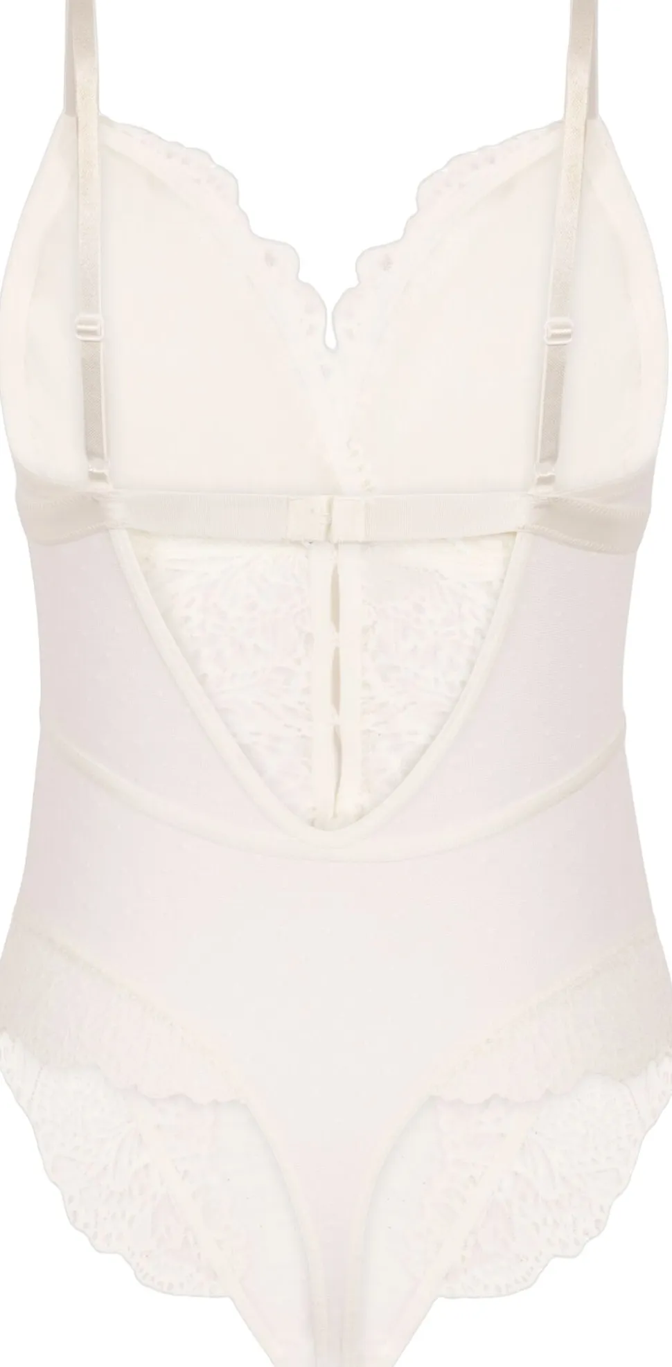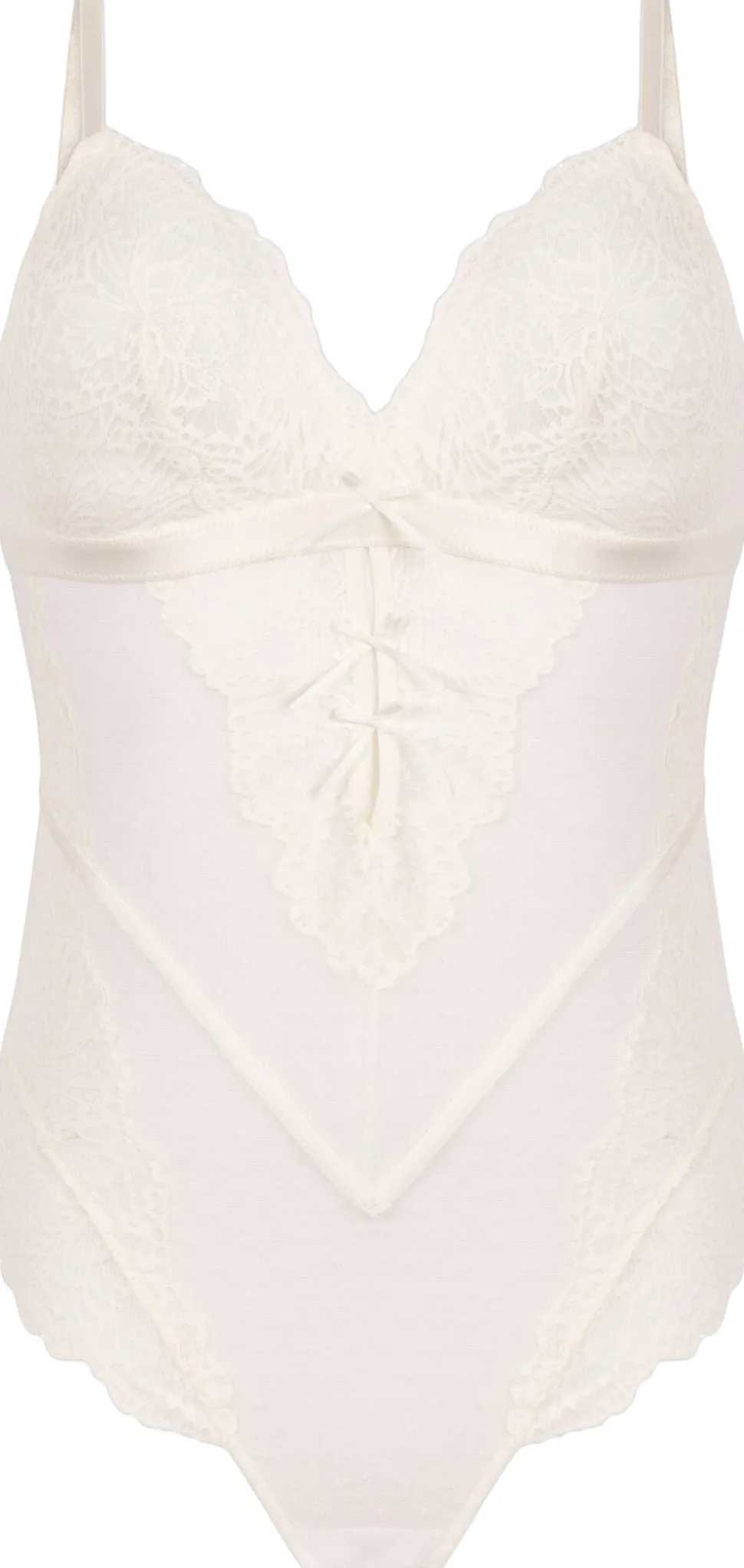 Charmér i denne smukke body, der er fremstillet af meshstof og prydet med blondedetaljer ved halsudskæringen og i siderne. Dekorative sløjfer tilføjer et flot touch.