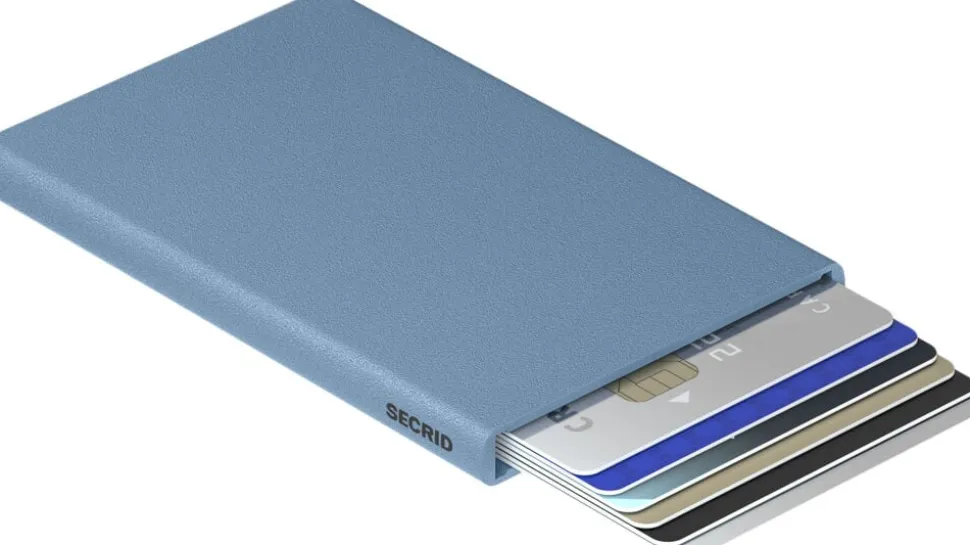 I denne cardprotector der har fået et overlay af powder – en kortholder der kan rumme 4-6 kort, der har et unikt touch og som er RFID sikker.