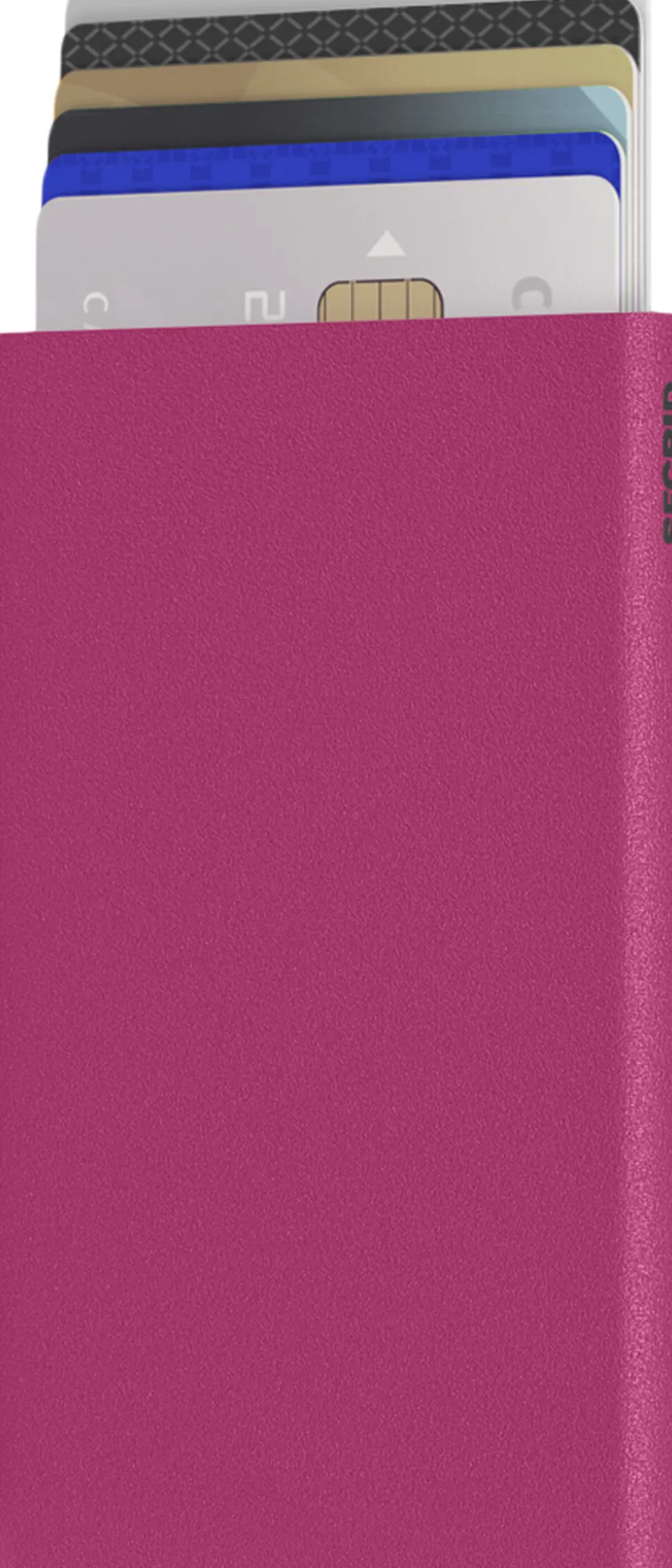 I denne cardprotector der har fået et overlay af powder – en kortholder der kan rumme 4-6 kort, der har et unikt touch og som er RFID sikker.