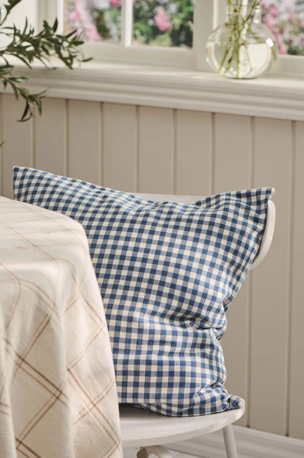 Pude Lucas mørkeblå m/naturfarvede små tern
