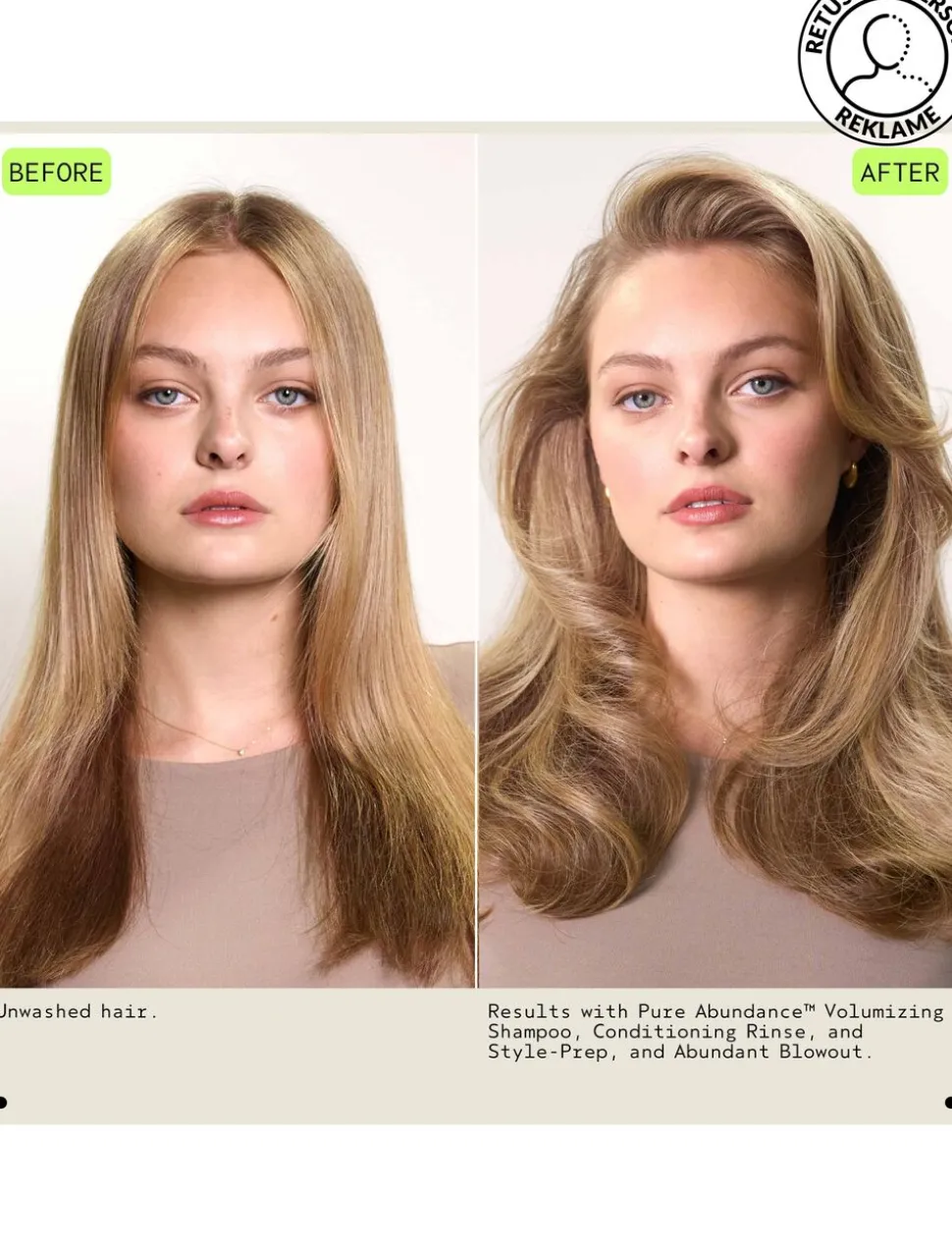 **Ved brug af Pure Abundance™ Volumizing Shampoo og Conditioning Rinse til fint Hår.