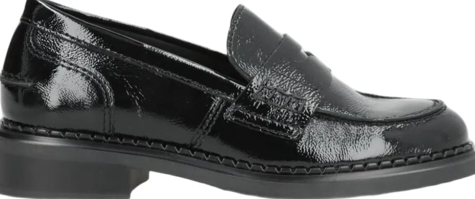 PURE P i laklæder fra phenumb copenhagen er en moderne loafer med et poleret og sofistikeret udtryk. Den skinnende lakoverflade kombineret med det klassiske penny-loafer design giver et look, der er både fashion-forward og tidløst. Den let hævede sål tilføjer komfort og en elegant silhuet, perfekt til både arbejde og after-hours.