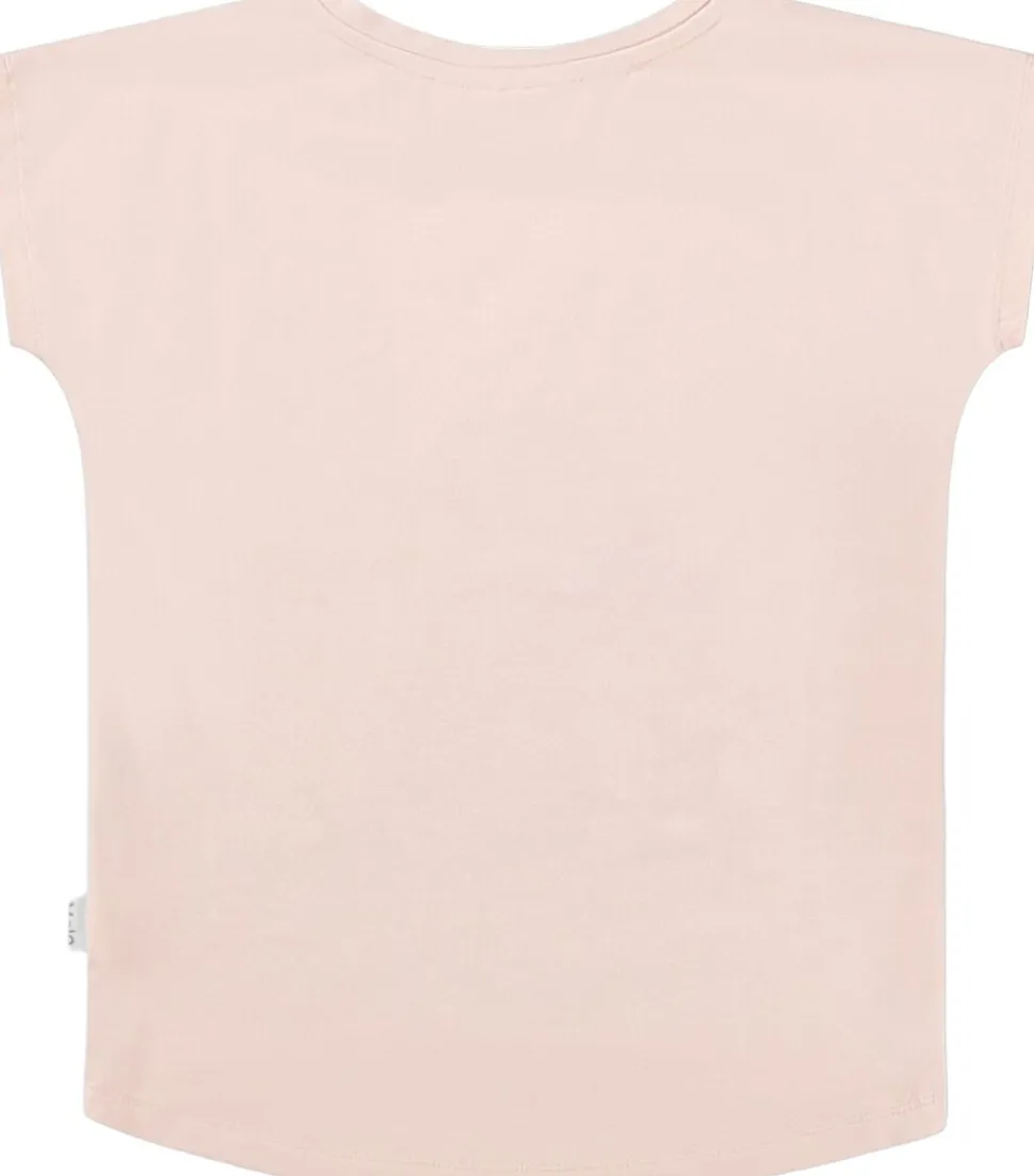 Blød t-shirt til børn lavet af kvalitetsbomuld, der sikrer komfort hele dagen. Den har korte ærmer og en ribkant ved halsudskæringen, hvilket gør den nem at tage på. Den længere rygtilføjer funktionalitet og dækker godt. Det charmerende dyremotiv med blomsterhætter vil blive et hit hos både børn og forældre. En must-have til leg og hverdag.