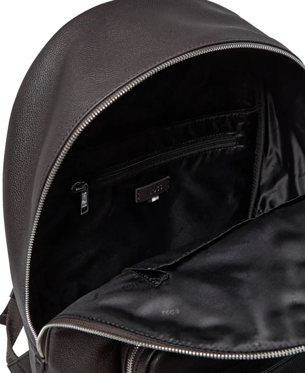 Denne rygsæk fra BOSS Menswear har en signaturstribedetalje og et præget logo og er fremstillet i syntetisk betrukket stof med en kornet tekstur. Justerbare skulderstropper. Syntetisk betrukket stof, undertiden benævnt faux læder, er et stof designet til at ligne ægte læder, og / eller vise en mat, skinnende, glat, eller tekstureret, belagt udseende. Mål: 42 x 28, 5 x 14 cm