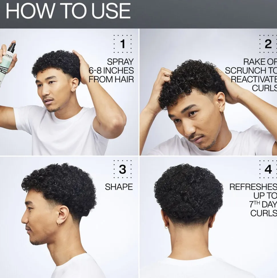 Sådan gør du: Anvendelse af Refreshing Curl Mist: Spray jævnt i sektioner gennem tørt hår og kram eller sno krøllerne med fingrene. Tillad at lufttørre.