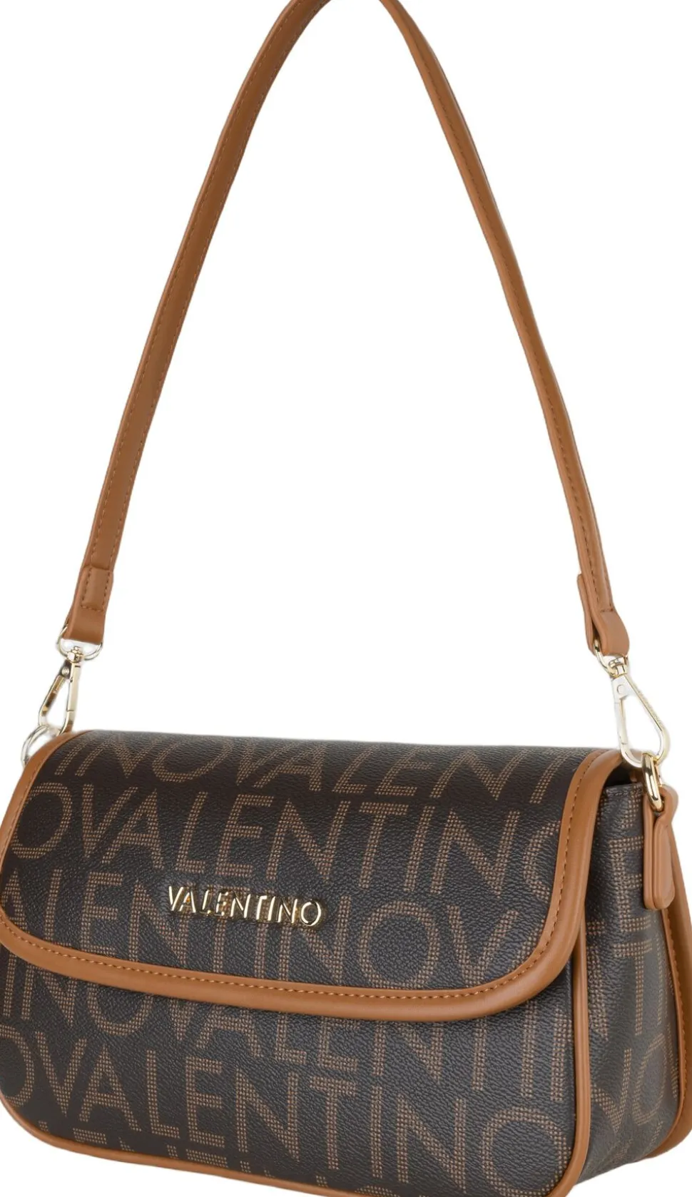 Regina Re skuldertasken fra Valentino Bags er lavet af PU og har et gennemgående “Valentino” Design. Den har to aftagelige stropper: en elegant tonal strop for et sofistikeret udseende og en dristig brandet strop til mere afslappede lejligheder. Kompakt Kompakt interiør, perfekt til at bære dine daglige fornødenheder. Guldtonede detaljer giver det perfekte sidste touch