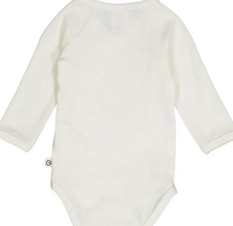 Dejlig blød rib body med kryds lukning. Bodyen kan åbnes helt op fortil med tryklåse så bodyen ikke skal ned over hovedet på baby. Bodyen har ydermere tryklåse i bunden. Denne body er lavet fra str. 44-74 og passer derfor til helt små babyer. Fremstillet i en dejlig blød bomulds rib med elastan. (GOTS Organic Certified by Ecocert Greenlife Lic. No. 152033). Produktet er GOTS organic- certificeret, hvilket betyder at bomulden er certificeret økologisk, og at der i alle andre processer som farvning, strikning og syning er taget de strengeste hensyn til miljøet. GOTS er internationalt anerkendt som den førende standard for forarbejdning af tekstiler af økologisk bomuld. Derudover tages der også hensyn til arbejdsforholdene, hos dem der producerer tøjet. Økologisk bomuld 95%, Elastan 5%