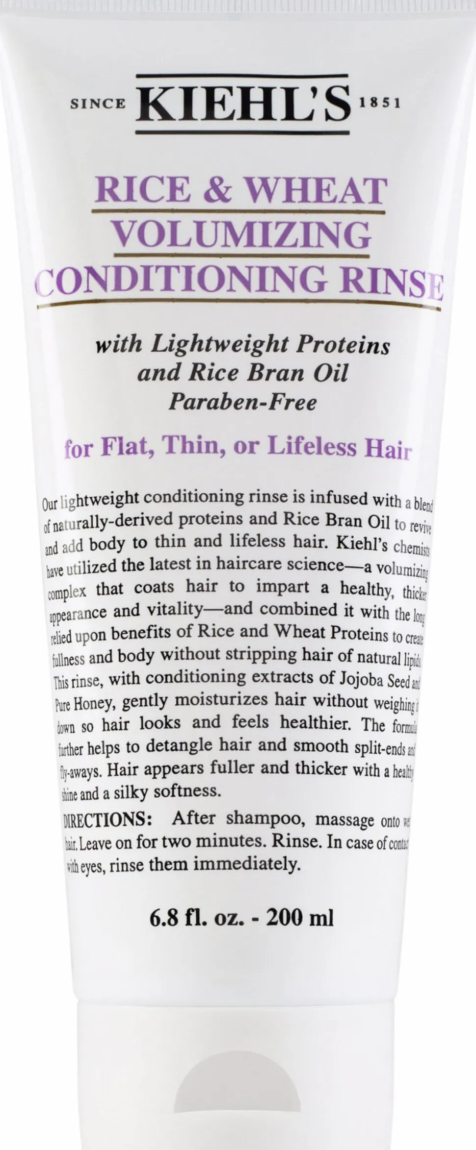 Kiehl’s Rice & Wheat Volumizing Conditioner. Genopliver fint og livløst hår, giver volumen og vitalitet, uden at udtørre håret. Hjælper yderligere mod flyvsk hår og ødelagte spidser. Indeholder bla. naturlig proteiner og poly-sukker, ris, hvedeproteiner, honning og jojobafrø.