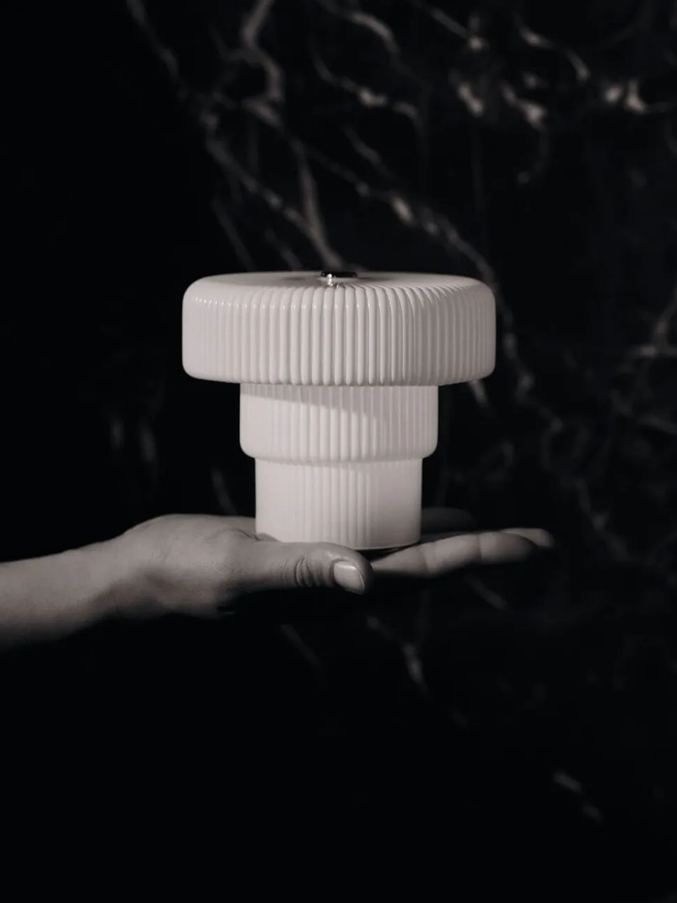 Kast et blødt lys over dit rum med den bærbare Ripple lampe. Den er fremstillet af mundblæst glas med en riflet overflade og hvid opal finish og kaster et varmt, diffust lys. Med tre lysstyrker er det kompakte design perfekt til intime aftener eller til at skabe stemning omkring et bord.