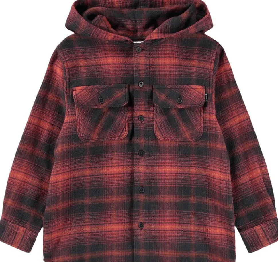 Denne sorte- og rødternede overskjorte fra Molo er lavet i bomuld og har en hætte, lange ærmer, sorte knapper, to brystlommer og en almindelig pasform.