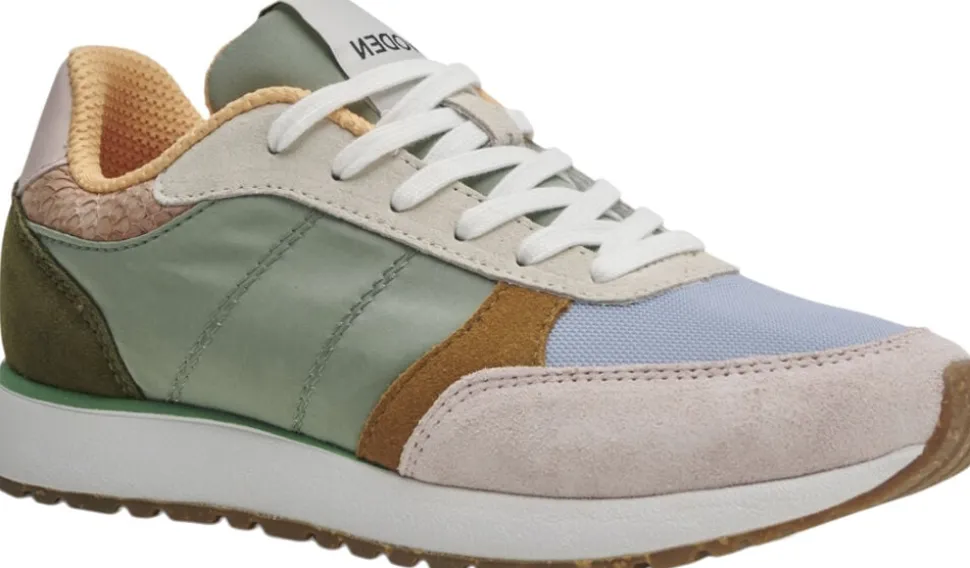 Ronja is based on an innovative design with cool color blocked details and a sporty design, crafted in leather and textile with fish leather details on the heel.All leather is from LWG certified production.Soft PU-foam is used for the sneakers insole, which is both lightweight and shock-absorbing.In addition to the characteristic WODEN cork sole, Ronja features a WODEN airflow footbed to ensure breathability and provides an ultra-soft walking experience throughout the day. Recycled textiles Molded EVA sole LWG certified leather Fish leather details Cork insole with Airflow system