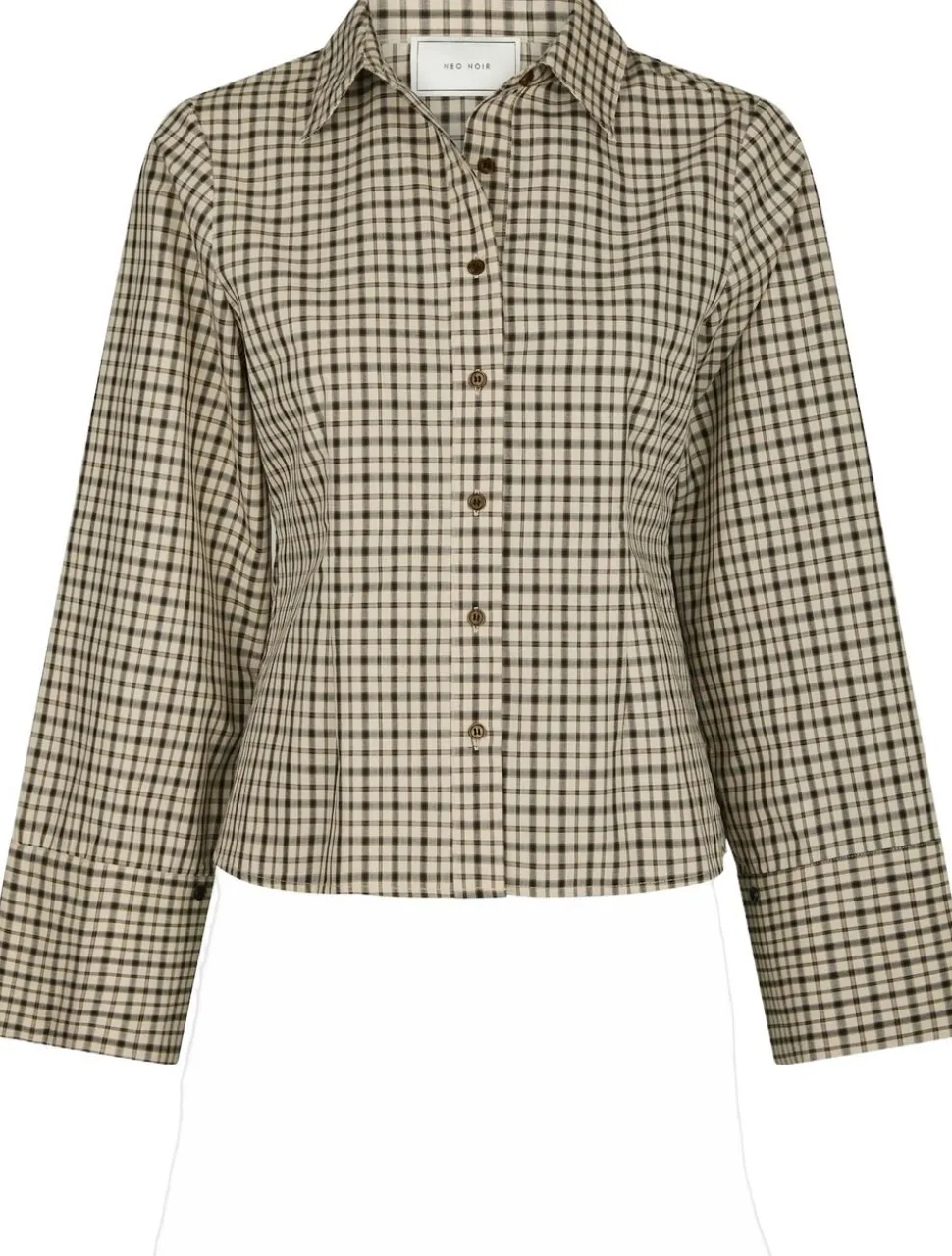 Ternet skjorte med brede ærmer og manchet. Skjorten kommer i en lækker bomuldskvalitet. Modellen er 176 cm og er iført størrelse 36.