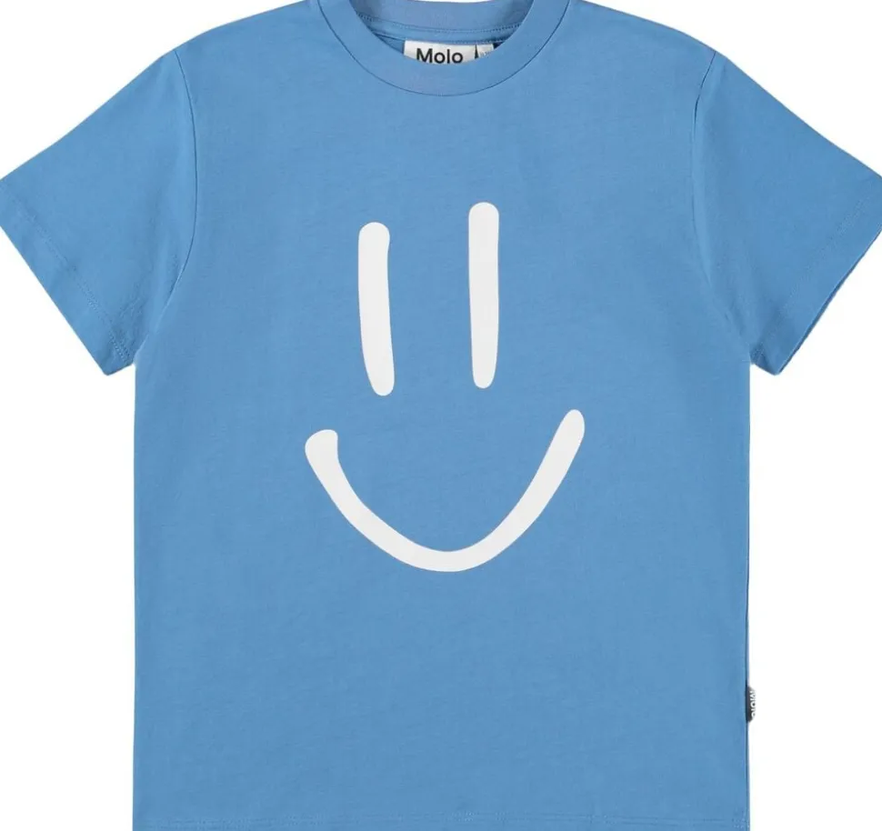 T-shirten er lavet af blødt bomuld med korte ærmer, der sikrer komfort hele dagen. Den har en løs pasform, som gør den lettilgængelig for børn at bevæge sig i. Det smilende ansigt på fronten tilføjer et sjovt og legende præg, som gør denne t-shirt til en favorit i enhver garderobe. Perfekt til leg eller afslapning.