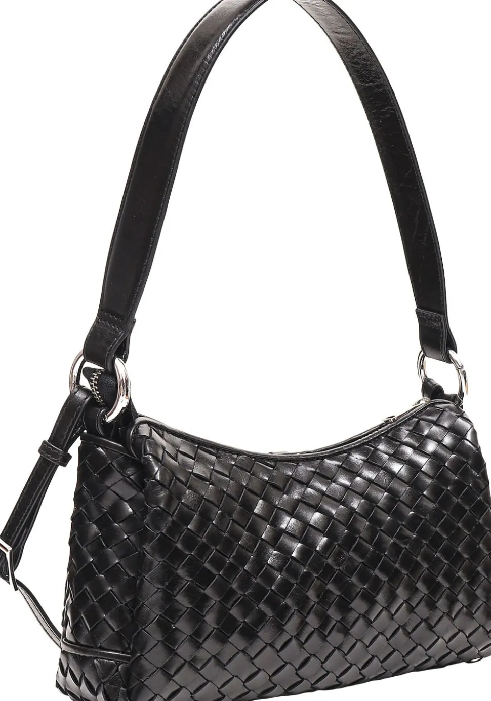 Elenora smart mindre hånd-/skuldertaske i flettet Salerno skind fra Adax. Der følger både en chic kort rem samt en lang justerbar rem med tasken. Indvendigt er der tre åbne rum, hvor der i det miderste rum er både en lille lynlåslomme og en åben læderlomme. Tasken kommer med en tote bag og en lille garantifolder som kan bruges som kortholder.