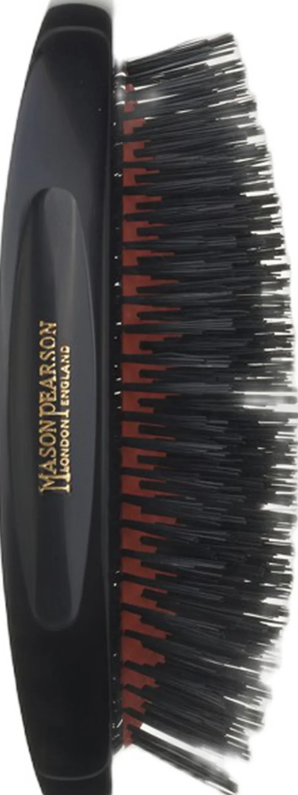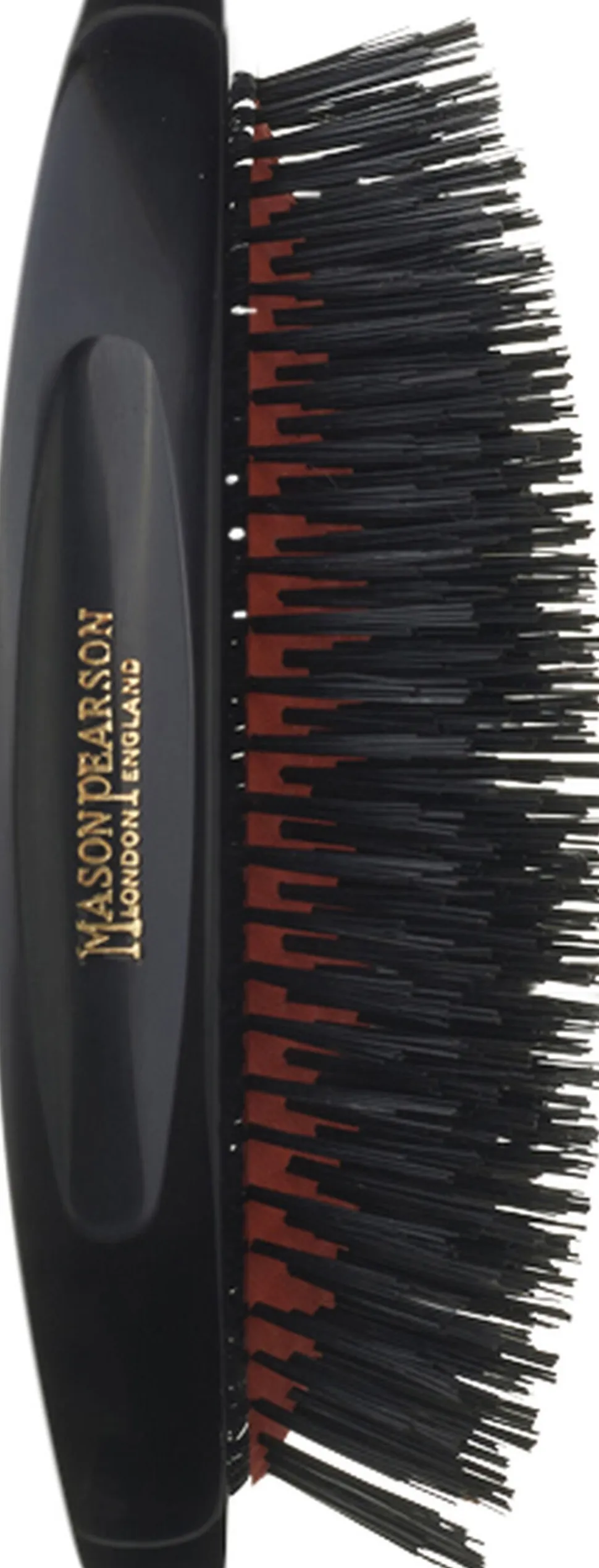 Mason Pearson SB2M er en medium størrelsen i sortimentet og er lavet udelukkende af rene vildsvinehår. Mason Pearson børsten i ren vildsvinhår anbefales til fint hår ogSB2M er fremstillet specielt til beskyttelse af sart hovedbund med tendens til hårtab. SB2M er specifikt designet som en herrebørste, Military style betyder at børsten ikke har et håndtag og er generelt kraftigere og mere maskulin i sit udtryk. En Mason Pearson børste masserer og stimulerer hovedbunden, hvorved hårbundens naturlige olier bliver frigivet. Ved gennembørstning bliver olien fordelt ud i længden af håret, så håret får en naturlig glans, samt fylde i bunden. Mason Pearson anbefaler 100 strøg om dagen – en investering i et godt hår hele livet!