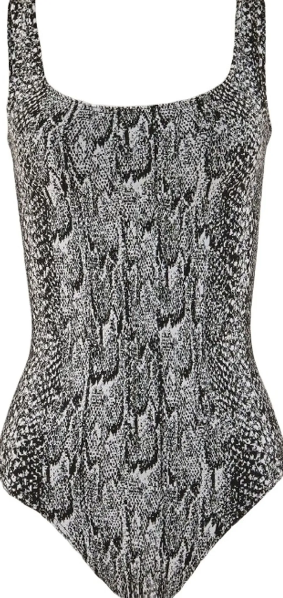 Denne bodysuit uden ærmer har et monokromt pythonmotiv, der ikke går glip afde matchende leggings fra kollektionen. Den balancerer kreativitet og innovation og er fremstillet af bæredygtigt farvet Emana-garn – en revolutionerende fiber, der absorberer varme fra Krop og returnerer den som infra
