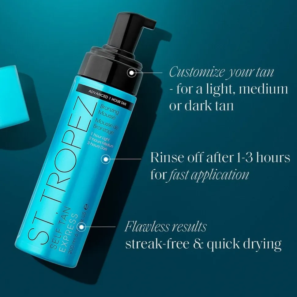 En let, hurtigt virkende mousse, som på ca. 1 time giver en naturlig solglødende farvetone.