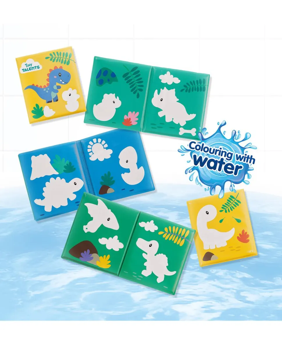 Indhold: Badebog med magiske farver og dinosaurer (8 sider).