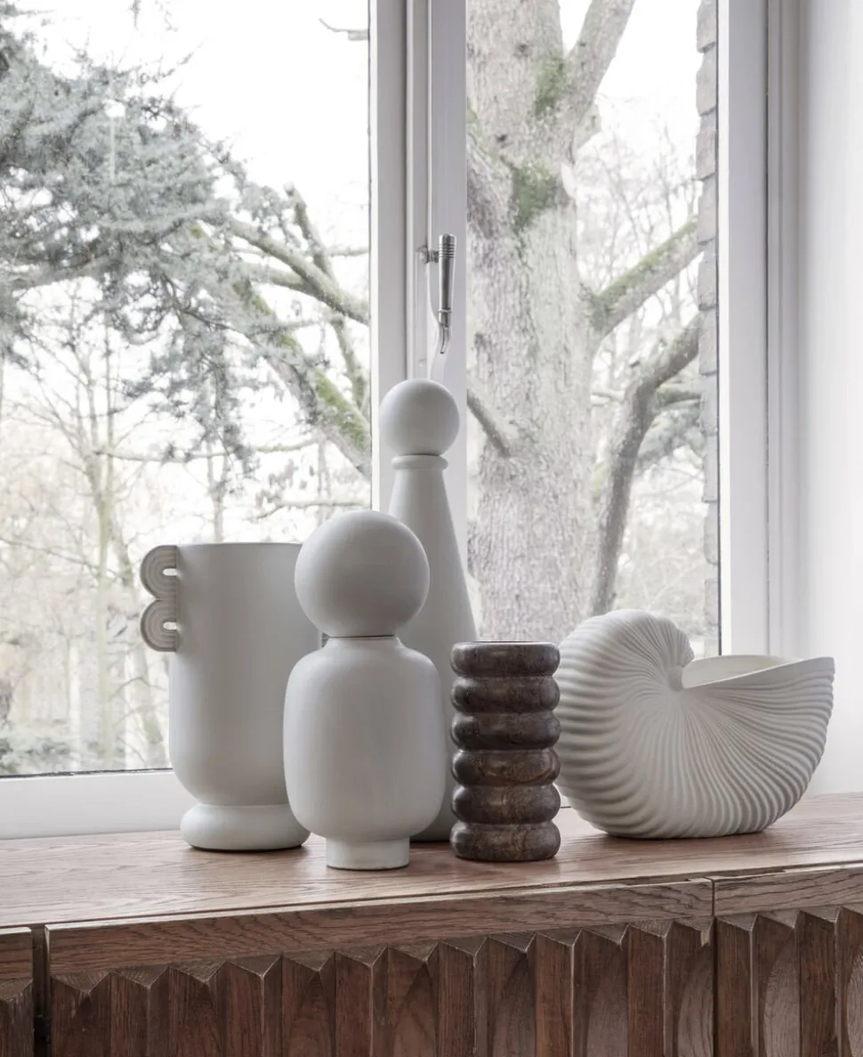 Fyldt med dine yndlingsblomster eller for sig selv forener denne potte, formet som en konkylie, naturlige former med moderne design. Med sit matte ydre og glaserede inderside tilføjer den en delikat detalje til ethvert rum, simpel og skulpturel på én gang.