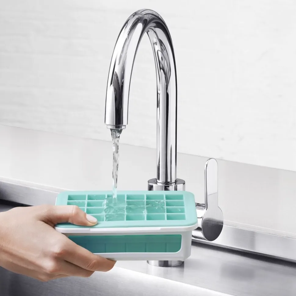 OXOs Isterningebakke m/Låg gør det nemt at lave ensformige isterninger til dine drinks. Bakken laver 48 små isterninger på 2,25 x 2,25 cm i 2 lag, og den fleksible silikone gør det nemt at få de frosne isterninger ud af bakken når de skal bruges. Bakken sidder i en fast plastik ramme, som giver bakken støtte og stabilitet mens bakken fyldes, flyttes og opbevares. Låget holder lugt ude og gør det samtidig muligt at stable flere bakker ovenpå hinanden. Tåler opvaskemaskine.