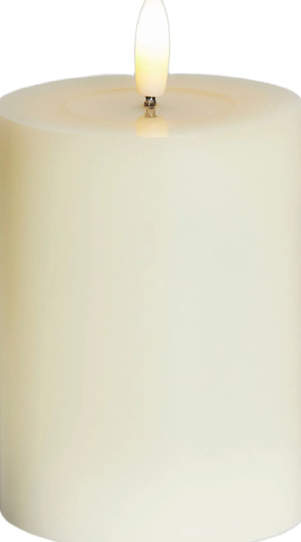 LED lak bloklys med 3D flamme der lyser med et varmt hvidt lys