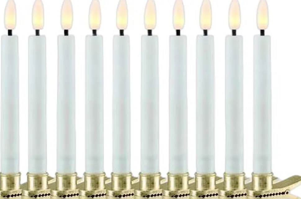 LED voks juletræslys med 3D flamme med varmt hvidt lys. Kan placeres på juletræet med den medfølgende clips-holder i guld eller i holder efter eget ønske. Sirius fjernbetjening medfølger, så alle lys nemt kan tændes og slukkes med et klik, eller timer funktionen kan aktiveres.
