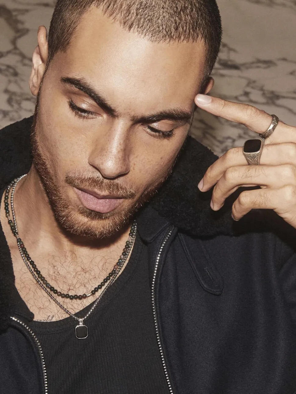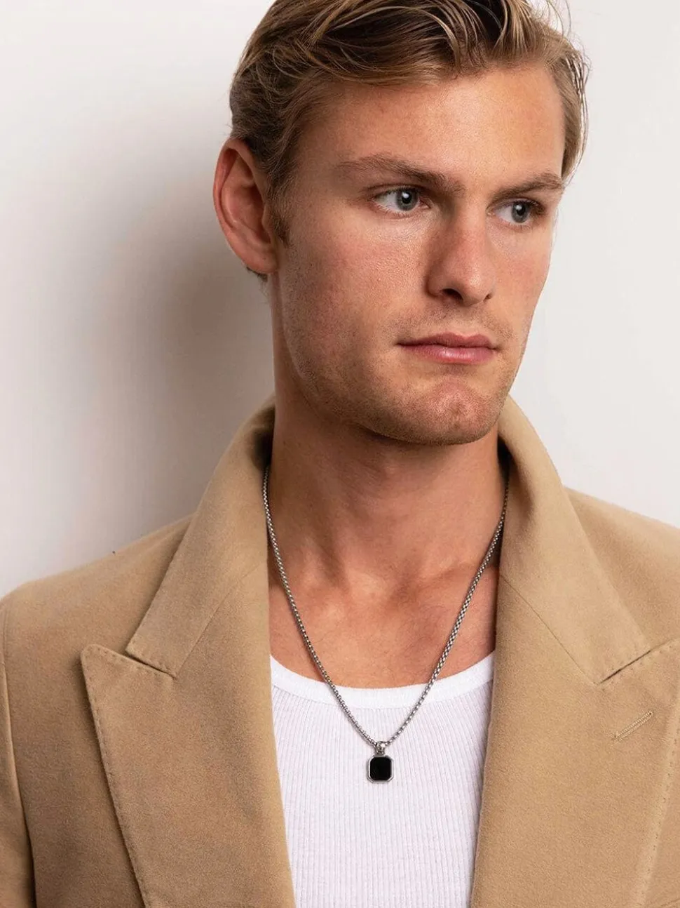 Pendant with Matte Onyx. Pendant size is 13.5 mm x 13.5 mm. Pendant inÂStainless Steel. Chain in Stainless Steel