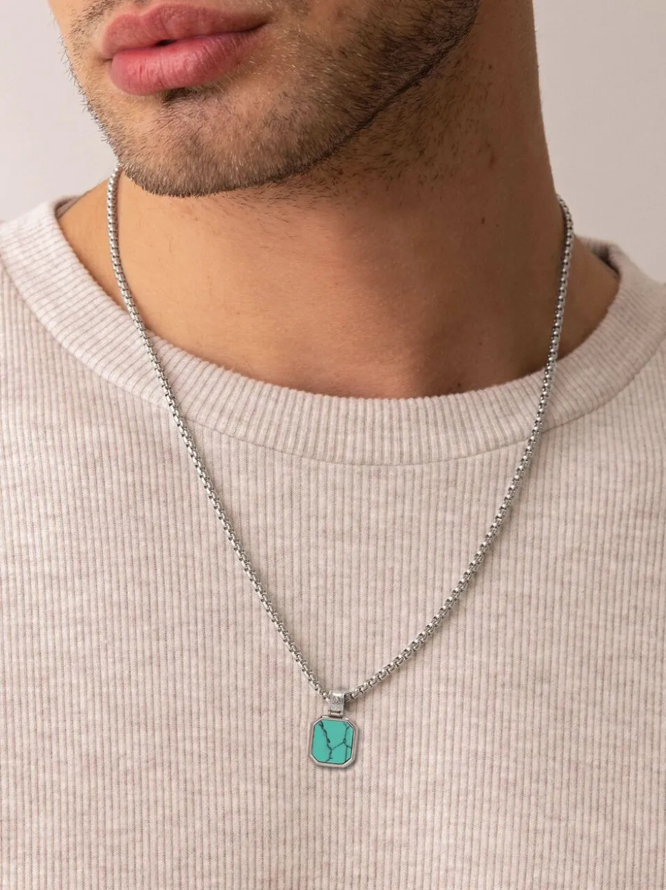 Pendant withÂTurquoiseÂisÂ13.5 mm x 13.5 mm. Pendant inÂStainless Steel. Chain in Stainless Steel