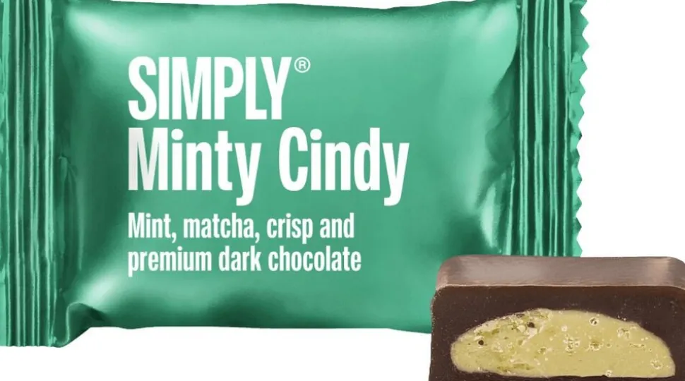 MINTY CINDY Cube m/ 9 bites. Et centrum af cremet hvid chokolade rørt med sprøde kornflager, matcha & mint overtrukket med premium mørk chokolade. En ideel kombination af smagsoplevelser! Simply Chocolate er lavet på det bedste naturen har at tilbyde. Premium kvalitetschokolade helt fri for kunstige tilsætningsstoffer.