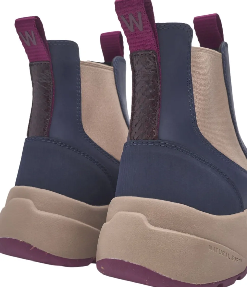 Siri er en slidstærk og vandtæt støvle lavet af 70% naturgummi med et elegant skridsikkert Design. Derudover er støvlen fremstillet af 30% Recycled og har flotte detaljer i fiskeskind på hælen. En karakteristisk track-sål fuldender støvlen for god komfort. Der er anvendt blødt Skum PU-skum til støvlens indersål, som både er let og stødabsorberende. Støvlens åndbarhed er sikret ved brug af en WODEN airflow fodseng og en ydersål baseret på vores Natural Soft teknologi, en teknologi designet til at sikre den bedst mulige komfort, hvilket gør Siri Waterproof til en behagelig vandtæt ledsager på farten. Støvlen har en EVA-Recycled med Natural Soft-teknologi, hvilket gør den vandtæt, let og slidstærk. Fiskeskindsdetaljerne, korksål med Airflow-system øger støvlens generelle komfort og kvalitet