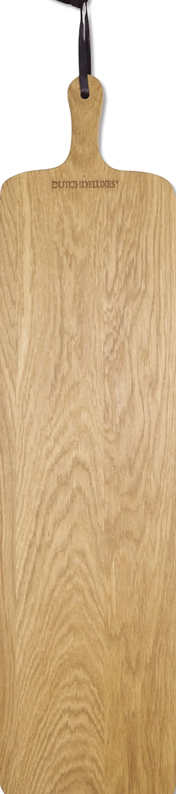 Er der noget, du vil fejre? Præsentér tapas eller bagværk på Slim Fit XL-træbrættet. Får dine snacks til at se endnu mere lækre ud. Nemt at bære, som en serveringsbakke. Servér for fire til seks personer. Dette 100 % massive egetræbræt er fremstillet i Holland og overfladebehandlet med vindruekerneolie og bivoks for optimal grundbeskyttelse. Oliér brættet en gang imellem, og du vil have glæde af det i årevis! XL Slim Fit er 19 x 80 cm [inkl. håndtag]. Fås også i massiv valnød, hård ahorn og i mange andre fantastiske XL-former og -størrelser.