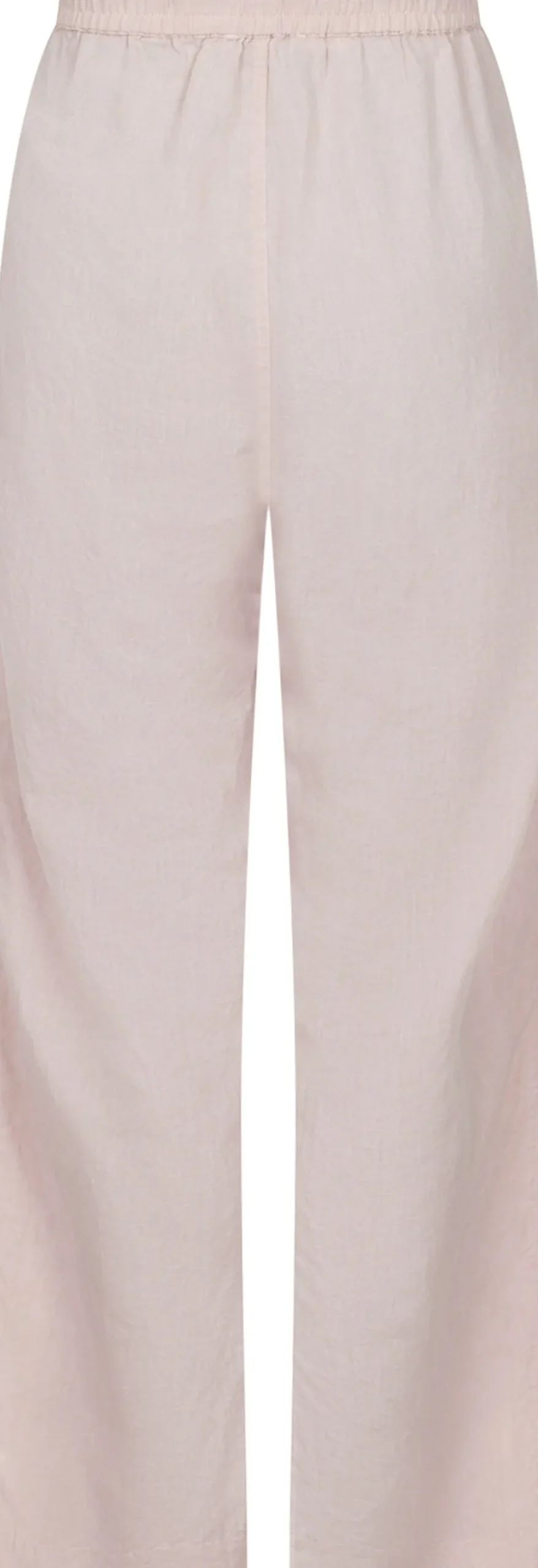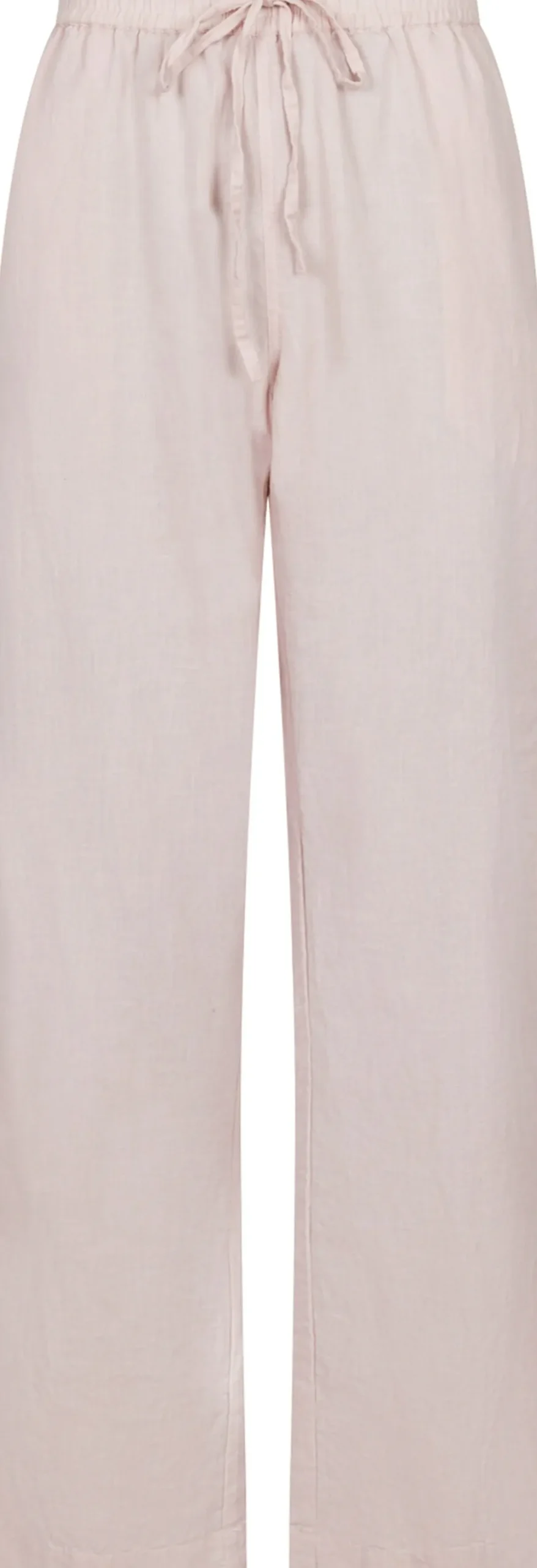 Bukser i en lækker hørblanding med brede ben. Bukserne har elastik og et justerbart bånd i taljen samt lommer i siden. De har en afslappet pasform. Modellen er iført størrelse 36.