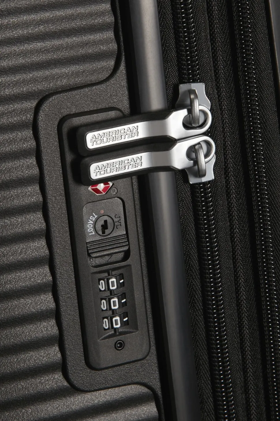 Kuffert lavet af slidstærk polypropylen, mulighed for udvidelse, indvendig stofforing med krydsbånd og lynlås lomme, Dobbelte hjul, TSA lås, rumindhold 97/110 L, vægt 4,2 kg. 3 års garanti.